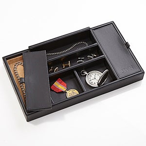 From coins and car keys to jewelry and accessories, our Executive Office Debossed Leather Valet Organizer will keep his valuables organized and easily accessible!