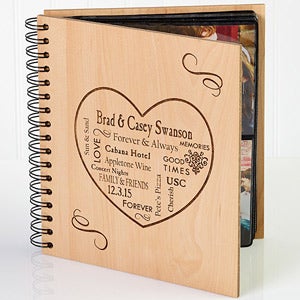 Personalize it with the couple's names and 9 lines of personalization that highlight their big day- church, reception hall, etc. Or include all of their favorite things....vacation spots, activities, etc. You can view the personalization example given under each personalization field below to see where that particular field will be located on the album. We will include static text- Love, Forever, Good Times, Memories.