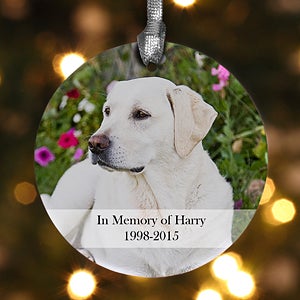 Electronically upload any snapshot (wallet size to 8" x 10") and we'll capture your furry friend on a 2 3/4" round, glistening ultra-polished porcelain ornament that comes complete with a silver satin ribbon for hanging.