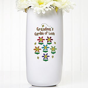 The colorful floral design features her special title, along with the names of each of her children or grandchildren, personalized on a beautiful ceramic vase, creating a one-of-a-kind gift for her alone!