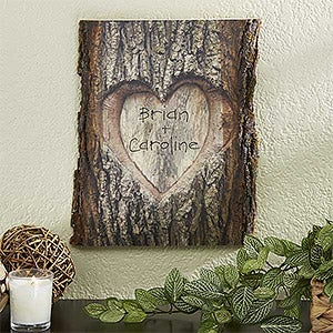 Create a lasting personalized keepsake they will enjoy year after year with any 2 first names or initials rustically imprinted, giving the appearance of a tree carving.