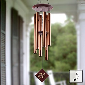 The wind chime's wood wind catcher iscustom engraved with any name andmonogram.