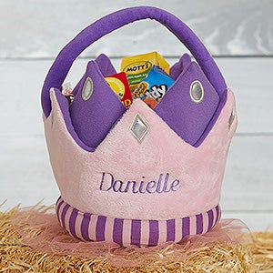 We will embroider her name across the front in your choice of 2 font options in the lavender thread shown. Our plush double layer crown also includes a delicate row of pink tulle across the bottom to complete the princess look