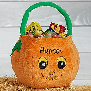 We custom embroider the name of your little "pumpkin" in the font style shown in coordinating black thread, claiming complete ownership of the bounty of treats inside!