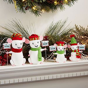 Choose from our 2 adult and 2 children mice statue options, then each resin plaque the mouse is holding is accented with festive, glitter and will be skillfully engraved with each family member's name for all to see!