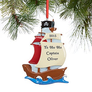 We will professionally laser engrave each ornament with any 3 lines of personalization and optional year along the pirate ship sail for all to see!